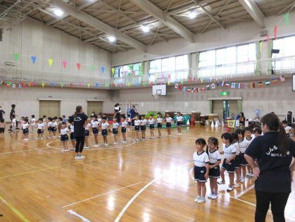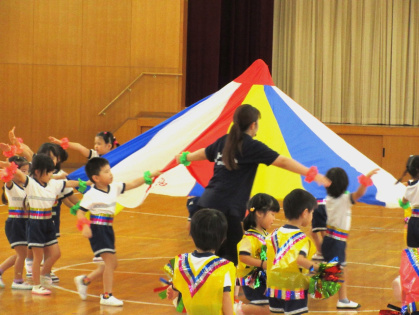 閉会式では園長Tの挨拶後、担任の先生から一人ずつメダルとお土産のクッキーをもらいました。保護者の方々に今まで頑張ってきた練習の成果を見ていただくことができました。『頑張ったね』『カッコよかったよ』のお言葉をいただき、嬉しい笑顔、そしてまた一つ自信へと繋がった子ども達。たくさんの拍手と応援をいただき、無事に終えることができました。ありがとうございました。