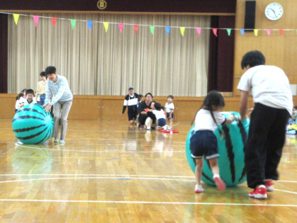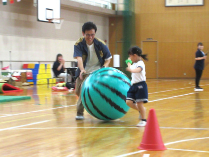 ★4歳児きりん組 親子競技『親子で転がせ!大玉スイカ』