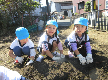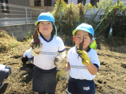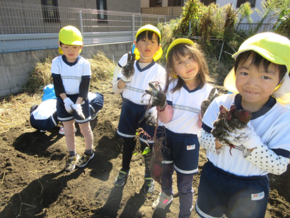英語教室(4歳児きりん組・5歳児ぞう組)&芋掘り(幼児クラス)