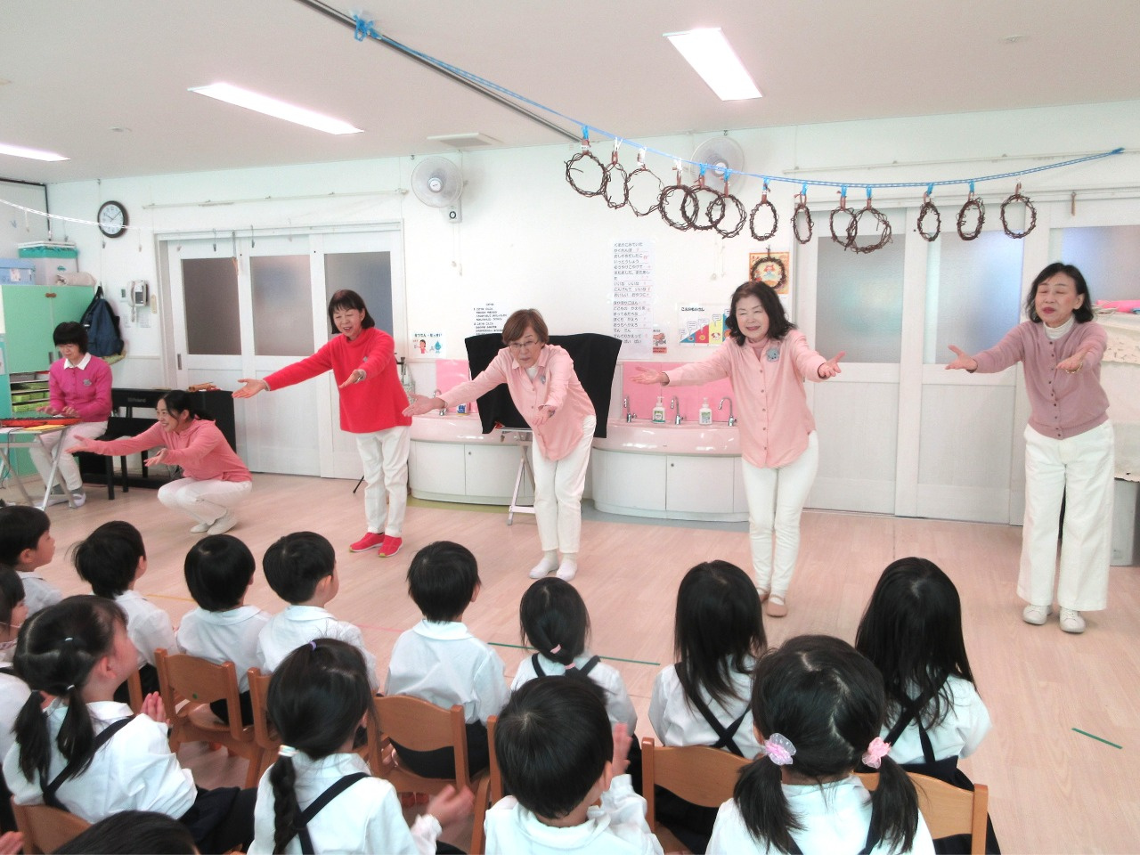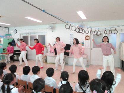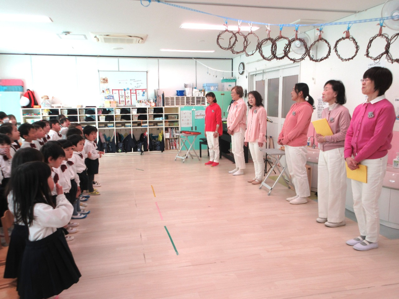 最後は、お礼の気持ちを込めて皆で「こぎつね」の歌のプレゼントをしました。「上手だね」と、たくさんの拍手をいただくと、とても嬉しそうな子ども達でした。本日は、ありがとうございました。また、来年も楽しみにしています!