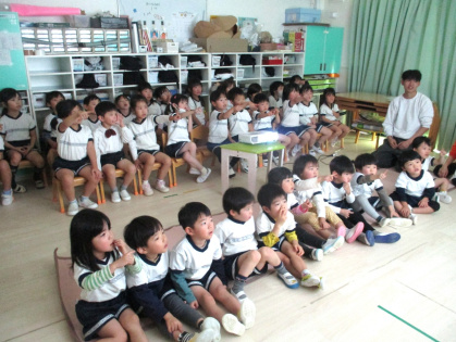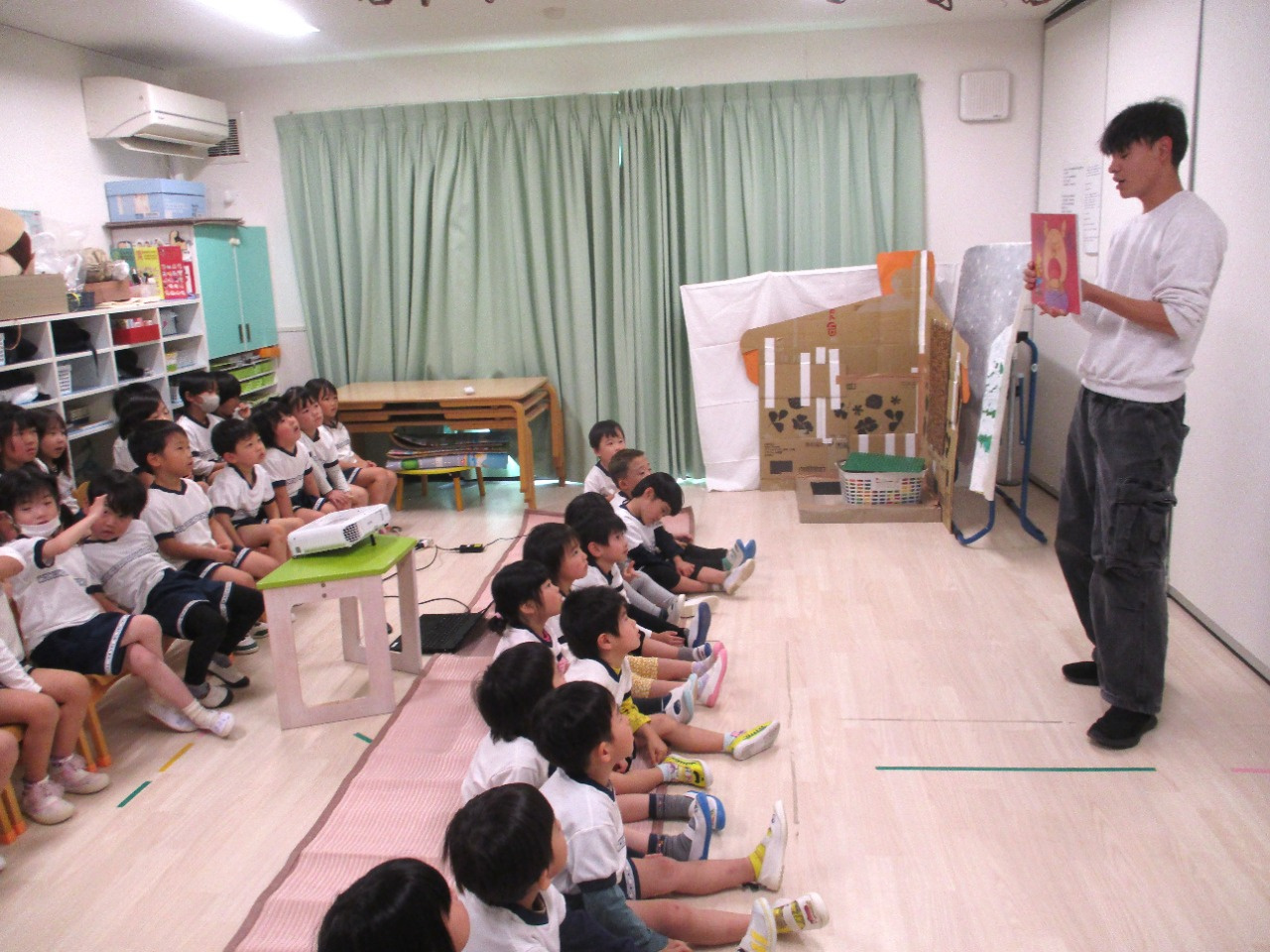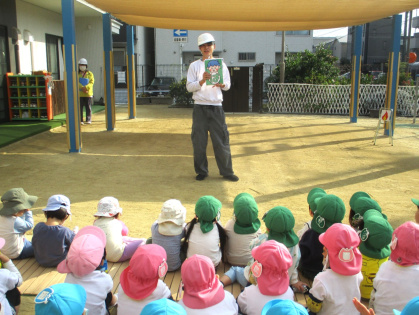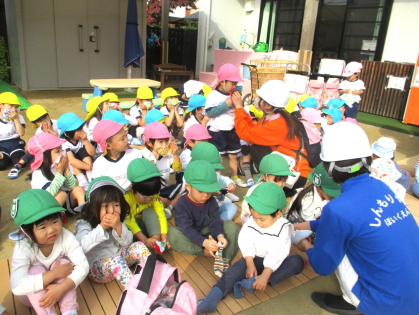 午後からは、幼児クラスのお友達は保育室で紙芝居「おかしもは かじのおやくそく」とDVD「めらめらもくもく」を見て、もしもの時にできることについて皆で考えました。