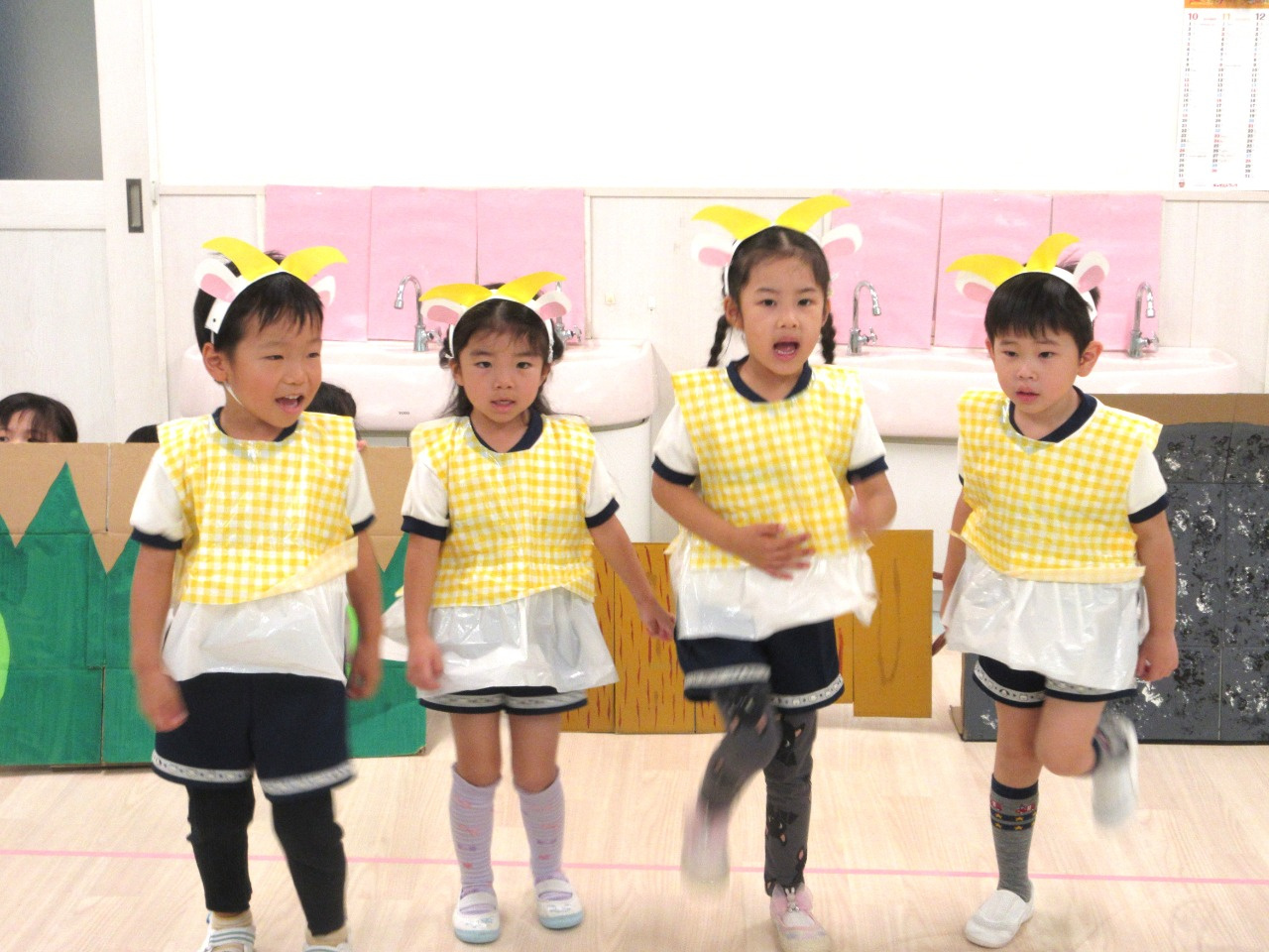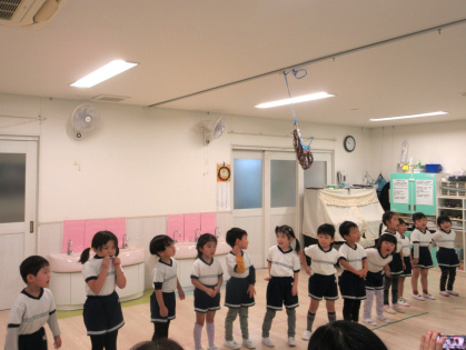 出番まで「きんちょうするけど、みにきてくれるのたのしみ~」と、話していた子ども達。ドキドキしながらも、とても楽しそうに発表をしてくれました。最後までみんな頑張りましたね!保護者の皆様もお忙しい中、見に来てくださりありがとうございました。
