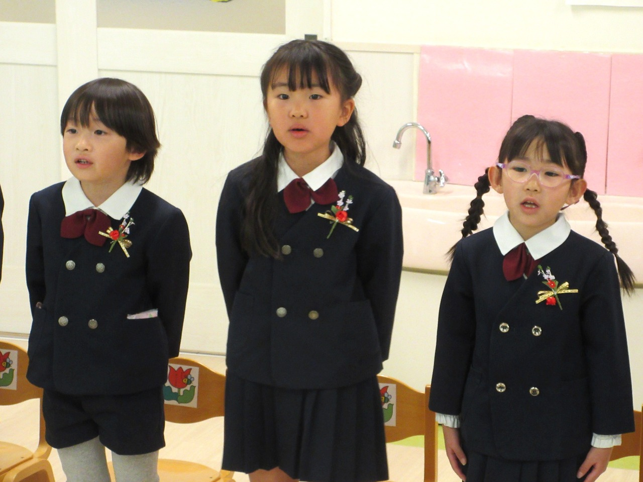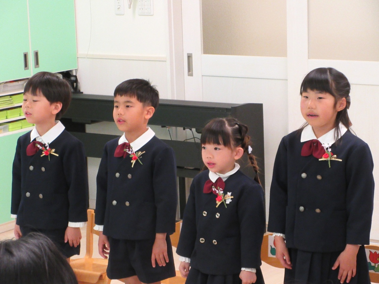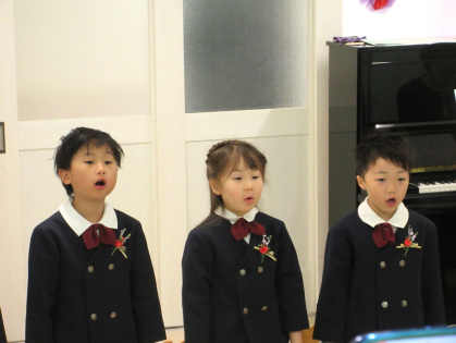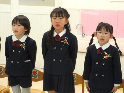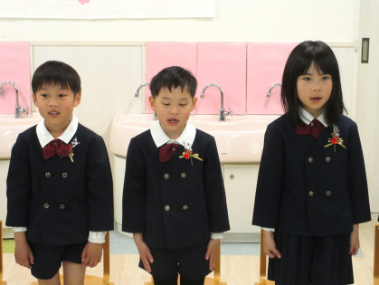 卒園児によるお別れの言葉と歌では、みんなで一年の思い出を振り返り「こころのねっこ」と「さよなら ぼくたちのほいくえん」を歌いました。